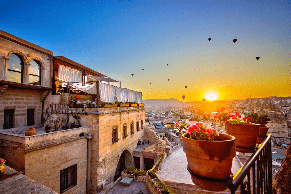 اکثر گردشگران و بازدیدکنندگان برای تماشای بالن های هوای گرم در طلوع خورشید به این منطقه سفر می کنند و نشستن در پاسیو بیرونی هر هتل غار در کاپادوکیا را بهترین بخش سفر خود می دانند.قابل ذکر است که اکثر هتل های گورمه فقط به میهمانان خود اجازه می دهند که به هنگام طلوع آفتاب وارد شده و از این منظره جادویی لذت ببرند و عکس های به یادماندنی ثبت کنند، پس اگر اگر می‌خواهید این تجربه را از دست ندهید باید اقامت خود را در یک هتل غار در کاپادوکیا رزرو کنید.
